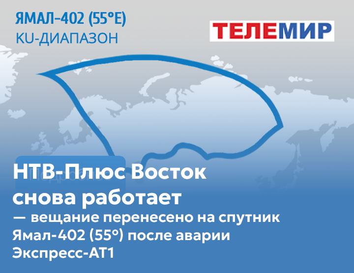 НТВ-Плюс Восток заработал — вещание перенесено на спутник Ямал-402 (55°) после аварии Экспресс-АТ1